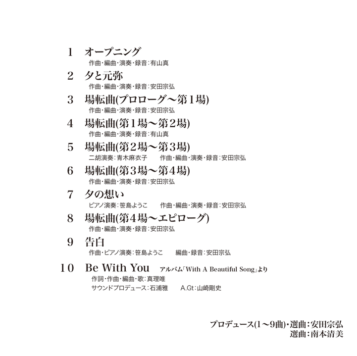 平成最後の公演に昭和から平成を彩る音楽たち!! 懐かしさと切なさをぜひ、お手元に!! 今回のゲスト・ミュージシャンは3名! 劇団P.O.D.ミュージシャンは2名!計5名の劇中自作音楽集です!!