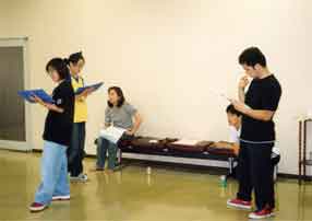 シーン練習が始まる前に少しでもセリフを入れて取り組もうとしているところ。