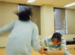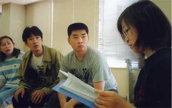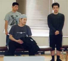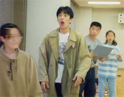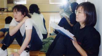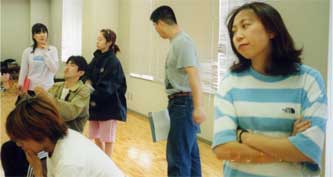 他の場面練習を見ながら、自分のシーンの「気持ち」を作っているところ。
