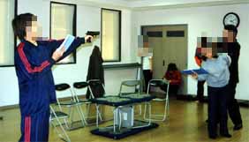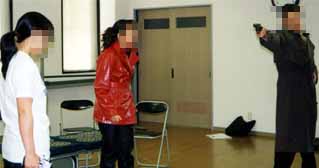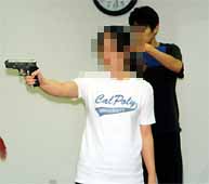 銃を持つはずのない人物が、銃を構えるシーン。