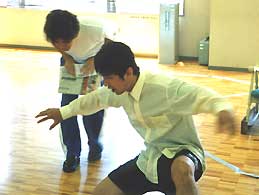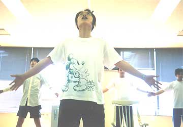ダンス指導:酒井亜希子から、「空を飛ぶ」指導を受けている様子。