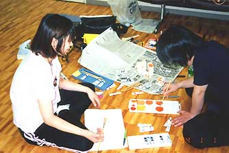 練習の合間に受付プロジェクトの依頼で、キャストのみんなに何かをしていただいているところ。