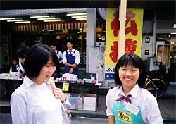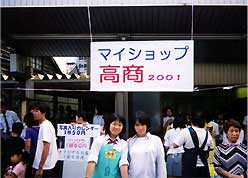 左写真:「マイショップ高商」という山本が在学中の高岡商業高校のお店の前で、