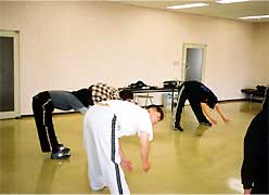 最近の練習では、始める前に柔軟体操とストレッチを行います。