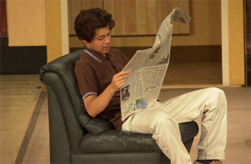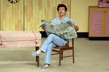 杉本伸良 役 本元真治が、新聞で野茂のチェック。
