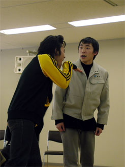 坂崎(副番長)役 吉田賢一郎(左)にからまれる場面。