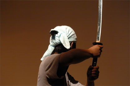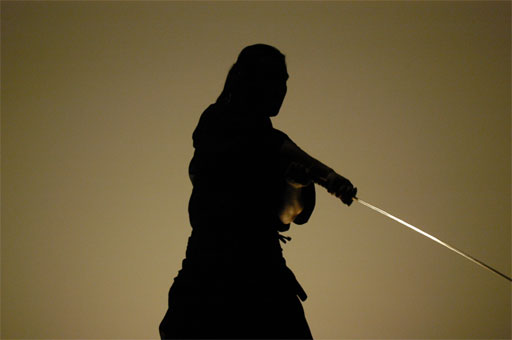 更に実際衣装を着て、実際の照明の元で刀を振って確認をしている