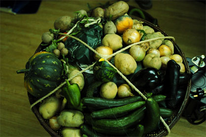 このように実際に野菜が落ちないように見えない水糸でも縛っております。