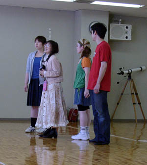 一連の発声練習のあと、各自台詞を素早く、かつ大きな声で言う練習です。