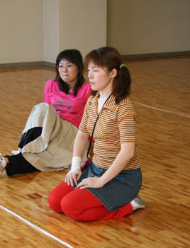 眼を閉じ、静かに演出の言葉を聴いているクリコ役:喜多ゆうこ
