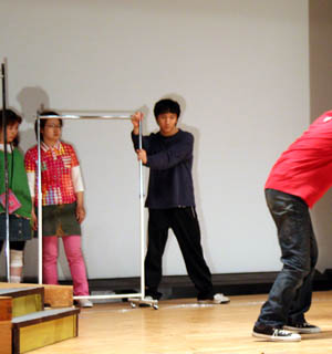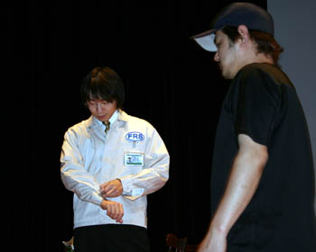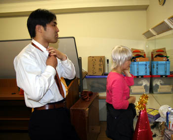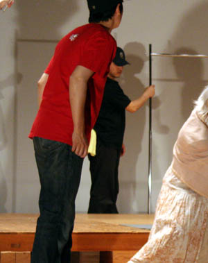 ビデオのセッティングを行う 左・・カシオ役:竹端裕二