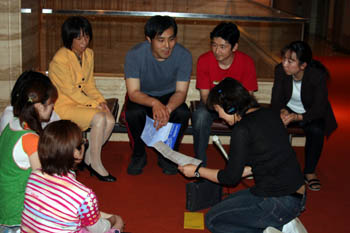 リハーサル終了後、講評を行う演出:影山じろう