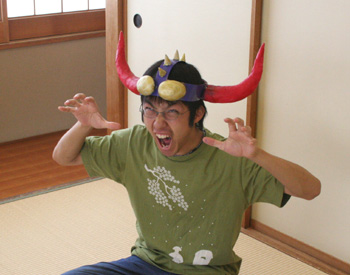 21回公演「西遊記」の牛魔王の角をつけて