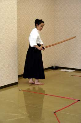 初音役:中河香理が稽古着を来ての構え。