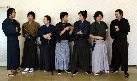 男性出演者が勢揃いして、パンフレットの写真撮影です。