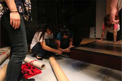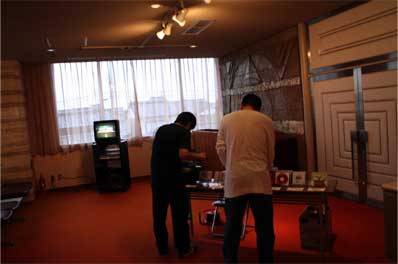 夜の初日公演の受付の設営にかかります。