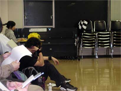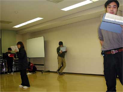 11月中旬の練習場では、まだまだ台本を持ちながらの場面が多いようですね。