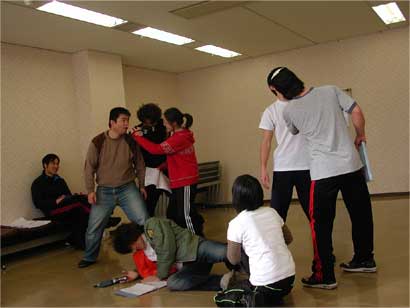 このころは台詞が怪しかったのか、台本を持ったままの稽古です。