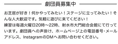チラシ中の「キャスト」「スタッフ」をクリックいただくと、劇団員のプロフィールが確認できます。
