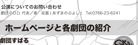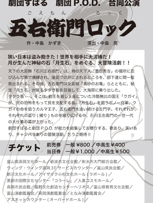 チケットは下記の観劇券販売所で発売開始しました! 劇団すばるさんの「ブログde日記」はこちら 劇団P.O.D.「稽古場日誌+α」はこちらから Web割引 もうしばらくお待ちください。