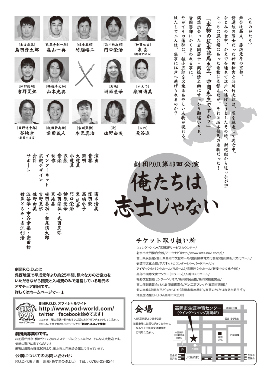 劇団P.O.D.の43回目の公演は、久しぶりの幕末時代劇に挑戦しました。