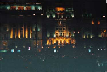 素晴らしい夜景の中のひとつ「中国銀行」。昔からの建物らしいです。すごくキレイですよね。照明が中国らしい色をつけてあって、うっとり。 |