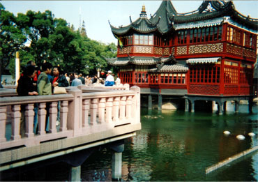 豫園(ユウエン)です。この建物の2階ではお茶ができるそうです。私は時間が無くて、できませんでした。う〜ん、残念。ここは、上海に観光に行くと、ほとんどの方が訪れるとのことです。 |