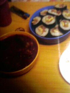 でもお昼になったら、元気!!!メニューは巻き寿司でした。あれ?これどこかで見たことあるな。。。と思ったら、ホームステイしてた時に焼肉屋さんで食べた、あの巻き寿司!(第一話みてね)日本のものと違っていて、ひとまわりくらい、小さいんです。