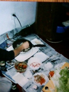 そして誕生日といえば、ケーキ。でも私達が用意したのはチョコパイ。韓国では兵役中、おやつとして、チョコパイがもらえるそうで、誕生日になったら、ロウソク代わりに煙草をチョコパイにたてて、お祝いするらしいです。だからなのか、チョコパイを用意した、友人Y。ホナムはチョコパイを見ると軍隊の時を思い出すからちょっと、嫌な気分になるらしいけど、この時は喜んでいました。