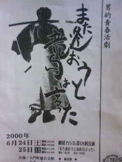 今思えば(1)⇒初めて観たPODのお芝居、「また逢おうと竜馬は言った」をきっかけに入団したので、入団してしばらく、部屋にこの公演のチラシを張ってました。だから、部屋には、必ず中島さんがいた・・今はクリアファイルにしまってあります。