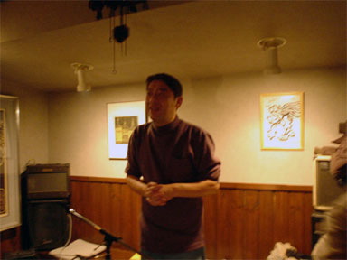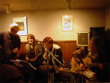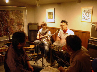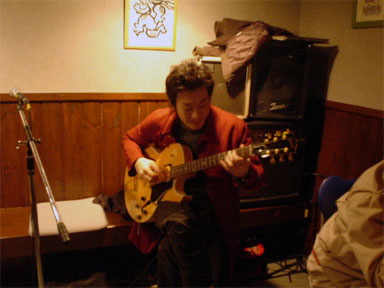 vol.15 「桃や」JAZZ LIVEレポート 第二部! 写真撮影&レポートは安田 枋です。 ★★ ★★ ★★ ★★ ★★ ★★ ★★ ほらね、すぐだったでしょう?(笑) では第ニ部、始まります。 "会社員さん"です。 ビートルズのナンバーを弾き語りで、プレイ。 口ずさんでいたお客さんがいましたよ。 "茶道具屋さん"です。三味線で富山の有名な民謡3曲披露。 三味線が店内の雰囲気を変えてしまいました。音の力ってすごいかも。 グループ名は"あいかな?"です。 男性2人の名字と女性の名前をつけたそうです。 "歯医者さん(左)" "歯科技工士さん(中央)" "会社員さん(右)" "歯医者さん(左)" "歯科技工士さん(左中央)" "介護士さん(右中央)" "会社員さん(右)"です。1曲だけでした。 "マサシさん(左)" "介護士さん(中央)" "会社員さん(右)"です。 "マサシさん(左)"と"会社員さん(右)"は親子関係。 曲は分からないけれどジャズっぽい曲でした。 そうそう、あのオーバー・ザ・レインボーも聞けましたよ。 桃やオーナーシェフ挨拶です。 "カイシンドウアルバイトさん(左)"と"桃やアルバイトさん(右)”です。 "カイシンドウアルバイトさん(左)"は"桃やアルバイトさん(右)”のご友人です。 グループ名は"ヤザンシロッコブラザーズ(仮)"です。 ベース担当のご友人はアルバイトのためお休みです。 "茶道具屋さん"(左)が、"散髪屋さん"に引っ張りだされて、 "マサシさん"(右)とブルージーなセッション。 "マサシさん"と"茶道具屋さん"がお互い話しもしていないのに 即興で曲を・・・凄い時間でした。 あっというまに時間は過ぎていきました。 が、JAZZ LIVEは終わってもまだ続きます。 "マサシさん"は、この後もずっと曲を弾いていたようです。 改めまして祝!!1周年!!!おめでとうございま〜す。 一番最初からホームページを見直してみて (↑しょっちゅう見てるんだけどね) ほんと、1年経ったんだなぁ〜としみじみ(笑) と同時に私はまだまだだ。 ここを見ていただいている人たちに 私が伝えたいことが伝わっているのか・・・。 これからも遠慮なく桃やを紹介していきます。 よろしくお願いしま〜す。
